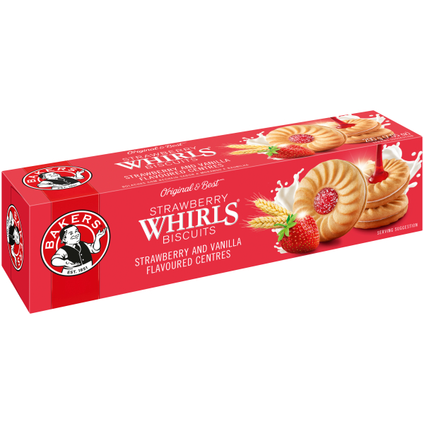 BAKERS WHIRLS STRAWBERRY 200G BISCUITS